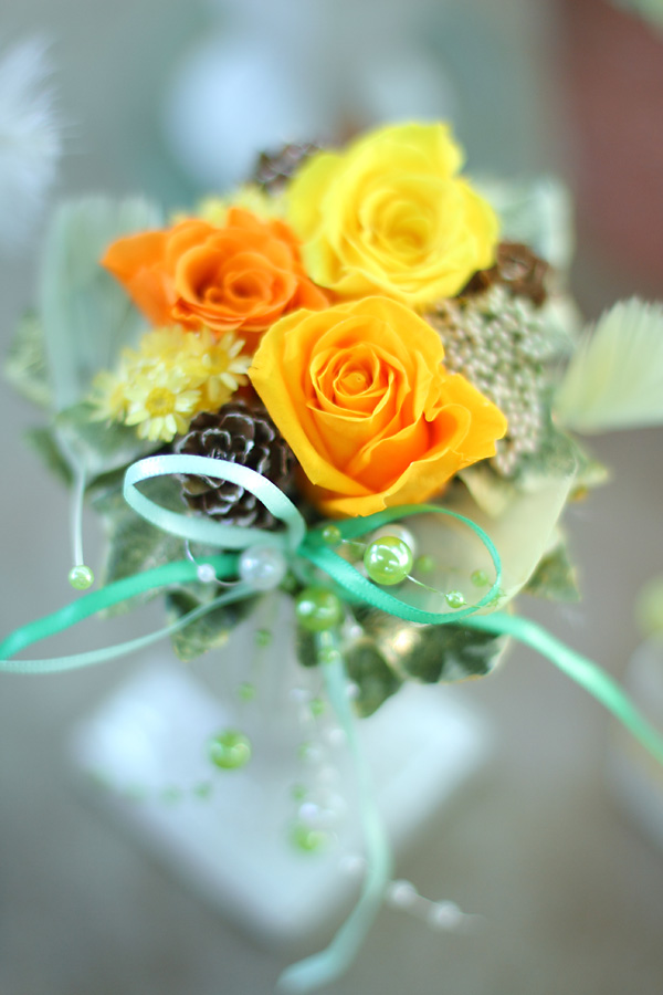 小さなプリザーブドフラワーです。APS-Cなら80mm相当になり、ほぼ最短付近でけっこうなアップで撮ることができます。それに画角が狭くなるので背景も整理しやすく、長いマクロレンズに比べると手ぶれもしにくい。