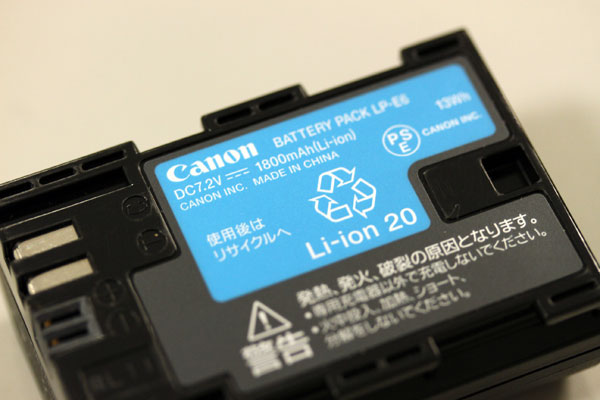 ちなみに、同じバッテリーパックLP-E6を使うEOS-7Dのバッテリーを見ると・・