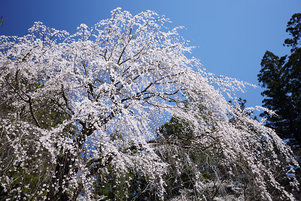 せっかくの見事なしだれ桜なので、広角レンズで撮ってみました。